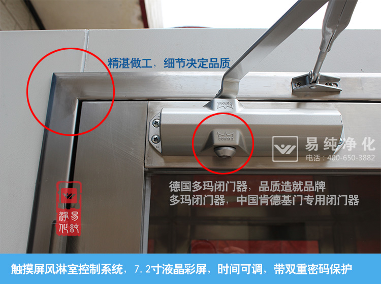 3、電子聯(lián)鎖:電子聯(lián)鎖是風(fēng)淋室當(dāng)中最重要的原配件之一,缺少聯(lián)鎖的風(fēng)淋室嚴(yán)格意義上不能稱之為風(fēng)淋室,因?yàn)槠洳荒軓?qiáng)制吹淋,不能起到緩沖作用。市場(chǎng)上部分廠家采用自制陰極鎖,這種鎖未經(jīng)過(guò)老化實(shí)驗(yàn),且加工粗糙,精密度不高。由于風(fēng)淋室電子聯(lián)鎖是頻繁使用的部件,所以質(zhì)量不可靠的電子鎖容易造成卡鎖,雙門無(wú)法打開而將人員鎖在里面了。